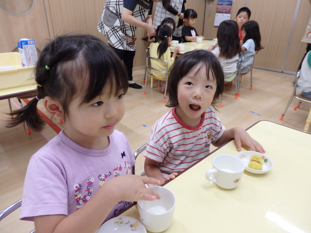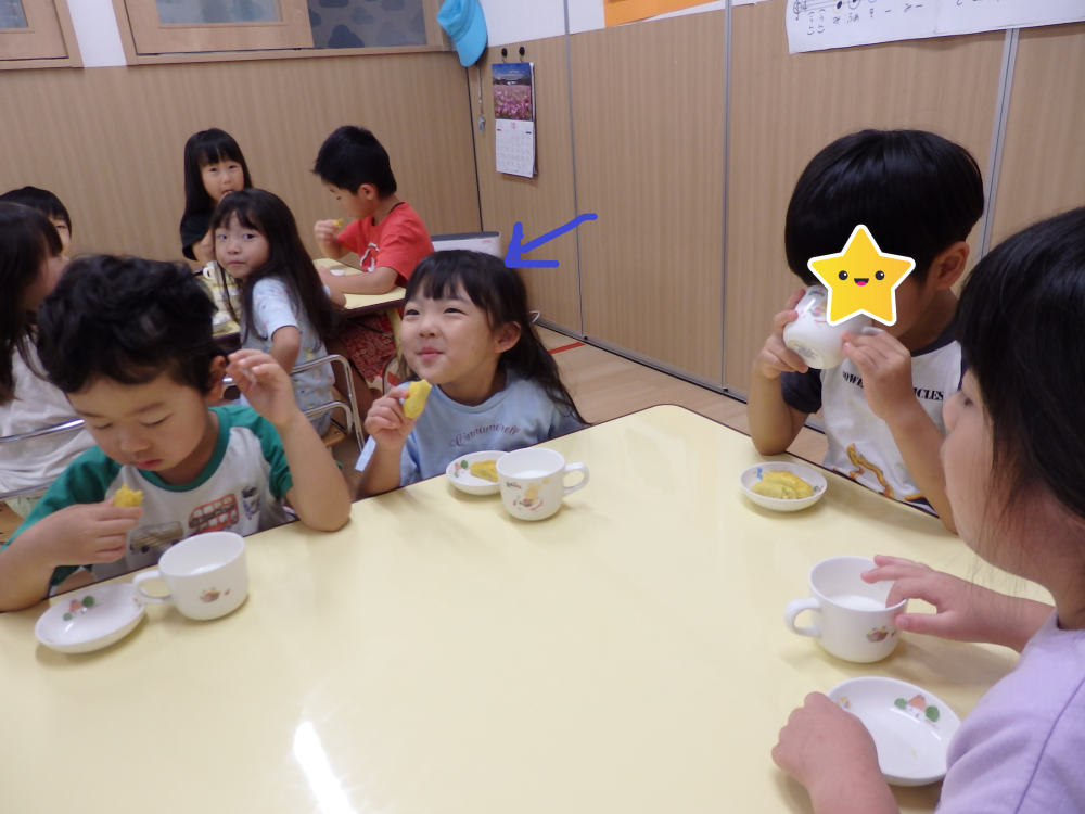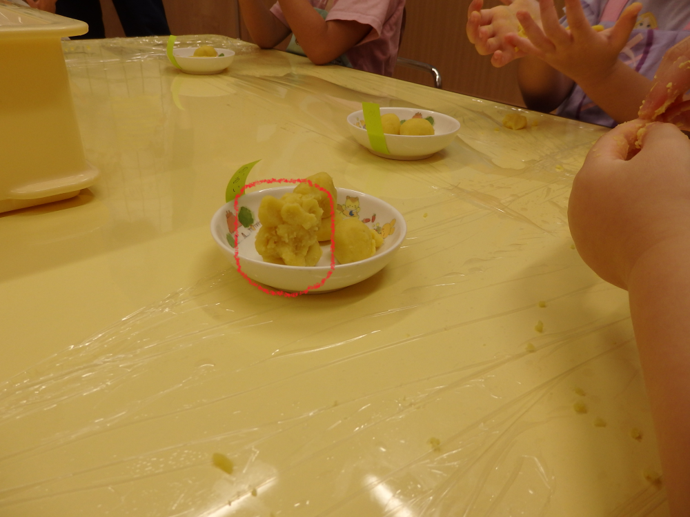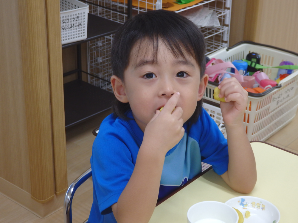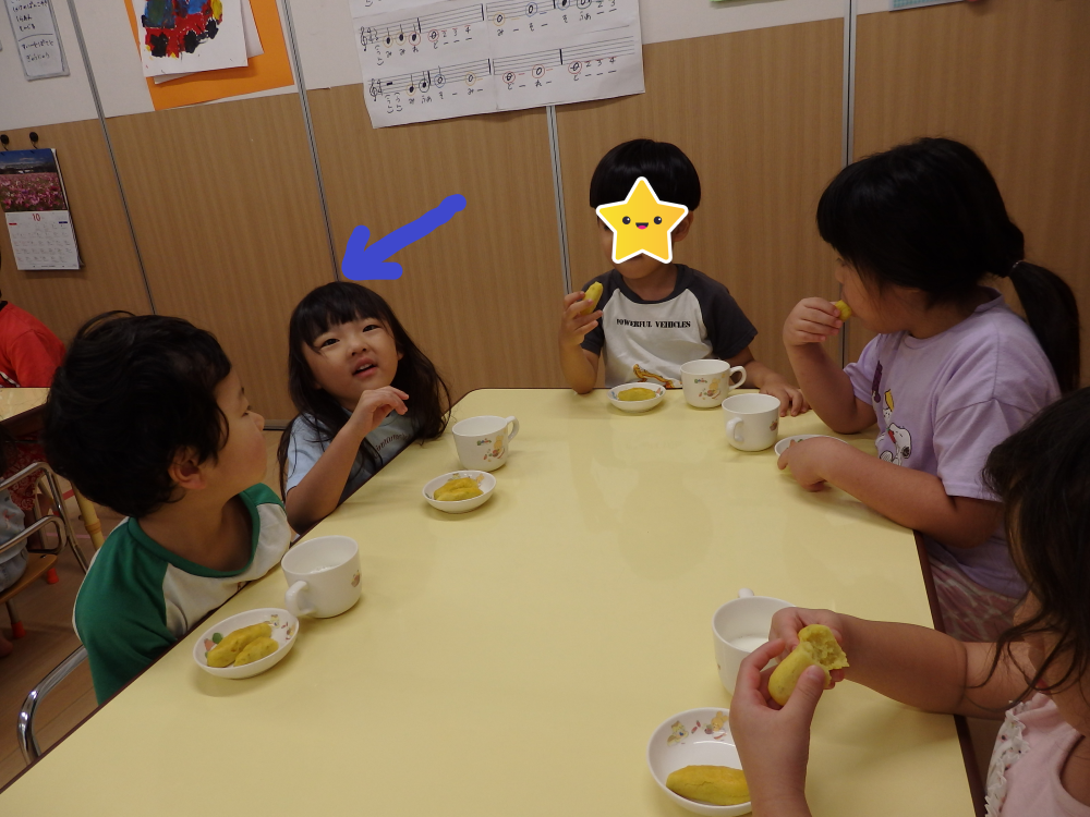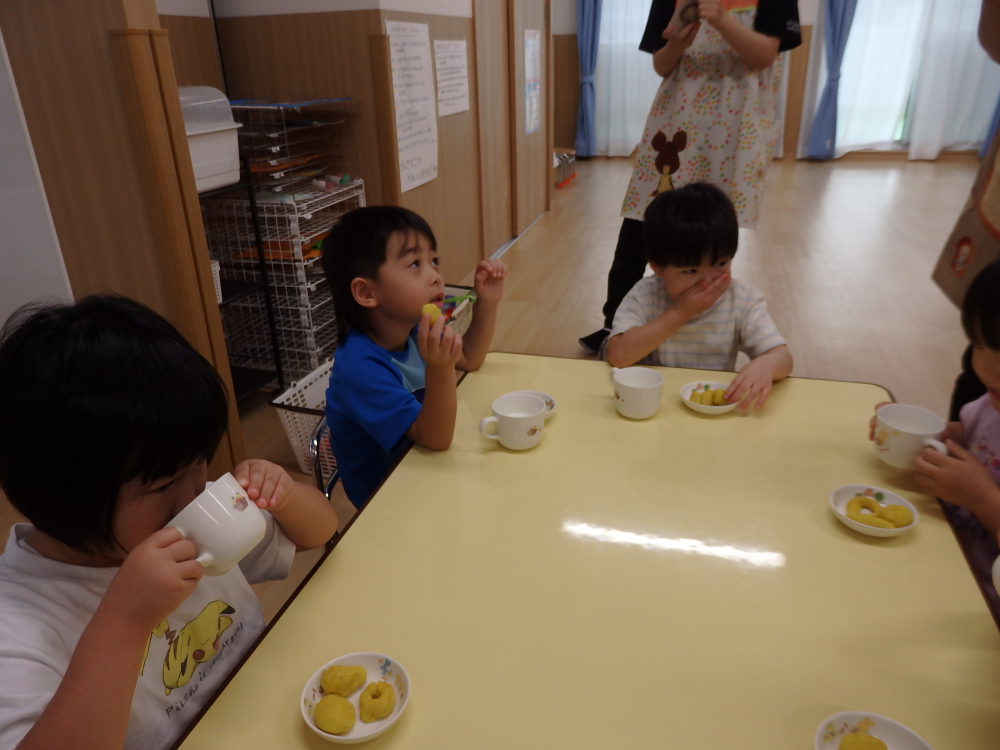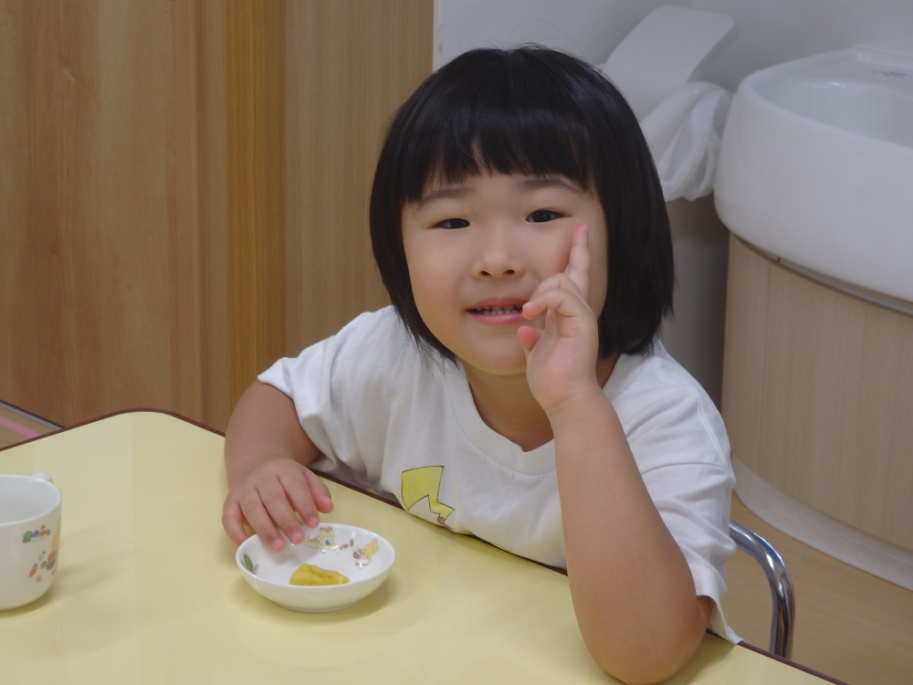 みんながお昼寝をしている間に、給食室で焼いてくれたスイートポテトを15時のおやつで食べました